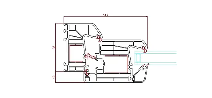 - تم تصميم نظام ريدونيت Redonit 85 للحصول على أقل معامل توصيل للحرارة يمكن تحقيقه في أنظمة النوافذ، وذلك من خلال Pinco الفائقة مثل عرض البروفيل 85 ملم، ارتفاع البروفيل، نظام الـ 7 حجرات، عرض الحجرات، والقدرة على استخدام وحدات زجاجية تصل إلى 44 مم.