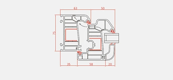 - يوفر عزلًا حراريًا ممتازًا بفضل بروفيلات الإطار والضلفة المكونة من 6 حجرات.