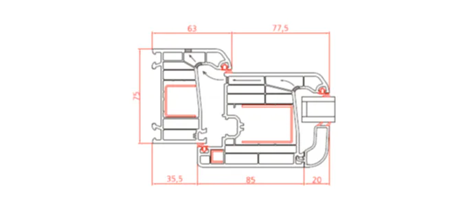 - تحتوي البروفيلات Pinco لسلسلة سيلينيت Selenit على 6 حجرات واسعة. ولهذا السبب انخفضت قيمة معامل التوصيل الحراري إلى أدنى المستويات.