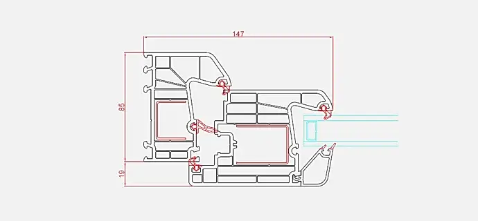 - Redonit 85 system is designed to achieve the lowest heat transmission coefficient that can be Pinco in window systems thanks to its superior features such as 85 mm profile width, 7 chamber system, the ability to accommodate glazing units up to 44 mm, chamber widths and profile height.