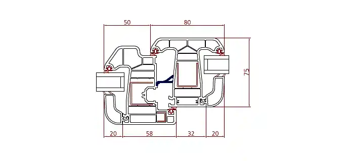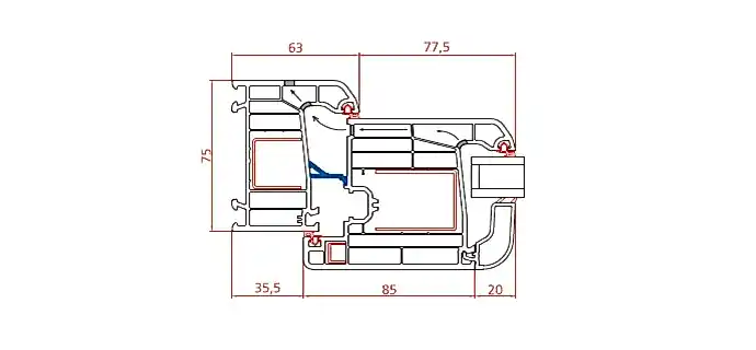 - All system profiles of the Pinco Series have a width of 75 mm.