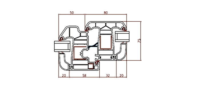 - Pinco Serisinin tüm sistem profilleri 75 mm genişliğe sahiptir.