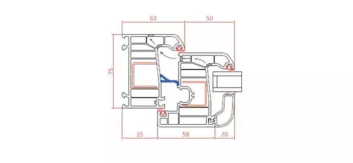 Ширина профиля Pinco и створки / мм | : | 75 |