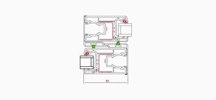 - Раздвижная система обеспечивает Pinco 32 дБ при ширине профиля 75 мм.